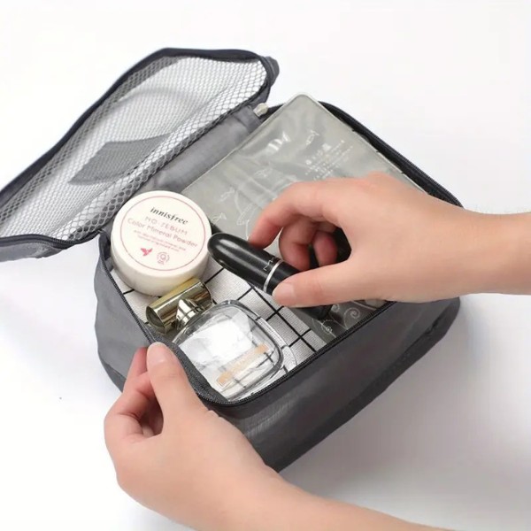 Materialul durabil și impermeabil asigură că articolele de toaletă și cosmeticele rămân sigure și uscate. Gențile mici cu fermoar sunt perfecte pentru machiaj, loțiuni sau orice articole lichide care trebuie păstrate la locul lor fără a se scurge în geantă.