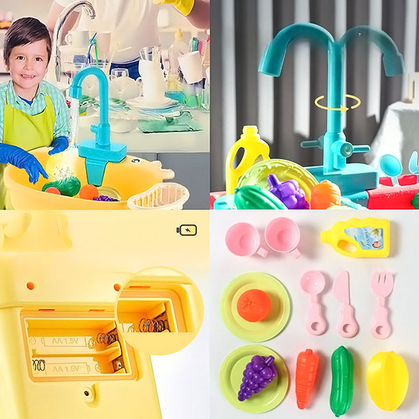 Chiuveta are apă curgătoare reală, făcând ca timpul de joacă să se simtă ca ceva real. Apa curgătoare adaugă o atingere interesantă, ajutându-i pe copii să exploreze și să interacționeze cu lumea din jurul lor prin prisma vieții de zi cu zi.