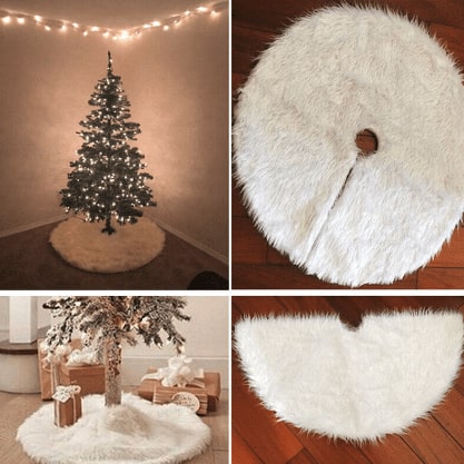Cu designul său elegant, covorul din blană albă aduce fără efort un efect uimitor de zăpadă sub bradul de Crăciun. Se armonizează perfect cu toate tipurile de decorațiuni de Crăciun, ceea ce îl face o alegere versatilă pentru orice pom de Crăciun.
