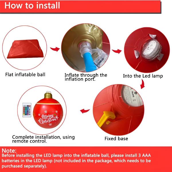 📦 Pachetul Include: 1x Bilă de Crăciun gonflabilă, 1x Lumină, 1x Telecomandă
