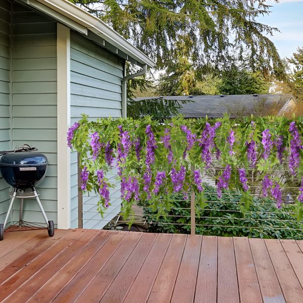 Căutați să creați aranjamente florale impresionante? WISBLOOM, glicină violet strălucitor, completată cu frunze verzi luxuriante, este perfectă pentru decorarea arcadelor, grilajelor, pereților, vitrinelor, restaurantelor, birourilor, petrecerilor și multe altele. Rezistente la razele UV și de lungă durată, aceste flori pot fi folosite în interior sau în exterior, adăugând o notă vibrantă oricărui decor.