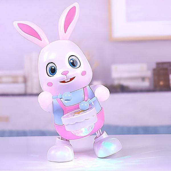 Activați iepurașul și priviți-l cum merge înainte și scoate sunete drăguțe!