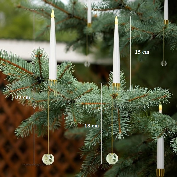 Aceste lumânări pentru bradul de Crăciun sunt prevăzute cu cârlige aurii și bile de cristal transparente, îmbinându-se natural cu ramurile bradului pentru un aspect elegant și festiv.