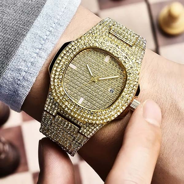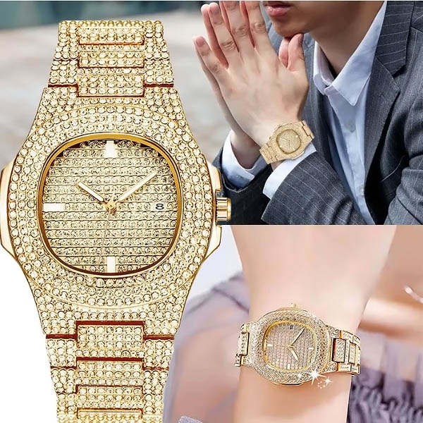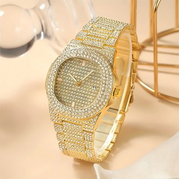 Mii de cristale strălucitoare transformă acest ceas într-un accesoriu captivant. Nu este doar un ceas – este o declarație îndrăzneață de lux și eleganță.