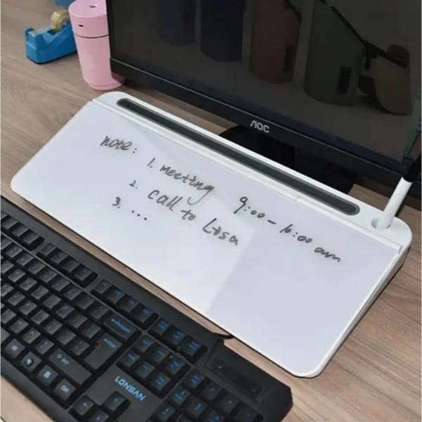 Aveți opțiunea de a scrie, șterge și rescrie pe tablă, eliminând necesitatea notelor lipicioase și a notițelor împrăștiate pe masă.