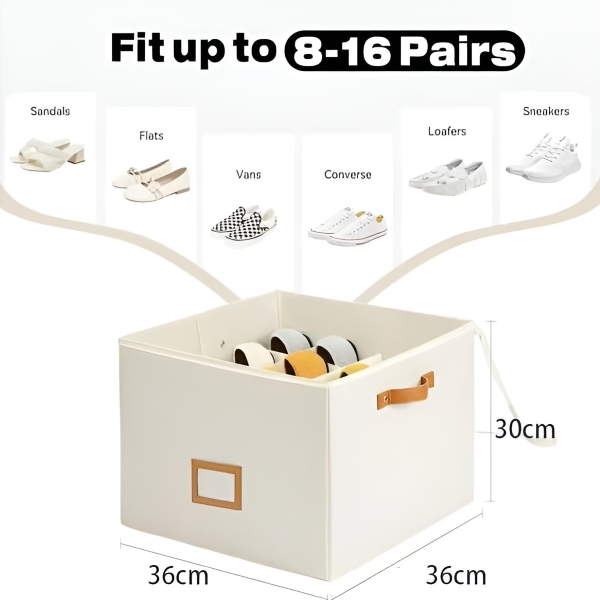 Organizatorul de pantofi SHOVERA este conceput pentru a încăpea 8-16 perechi de pantofi, inclusiv sandale, papuci și adidași, într-o dimensiune compactă de 36x36x30 cm. Designul pliabil asigură depozitarea ușoară atunci când nu este utilizat, fiind ideal pentru locuințe, cămine studențești și încălțăminte de sezon.