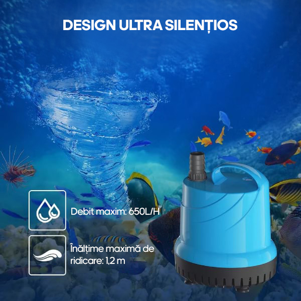 Designul unic al pompei ajută la curățarea deșeurilor de pește și a impurităților, menținând apa din acvariu proaspătă cu un efort minim. 🚰
