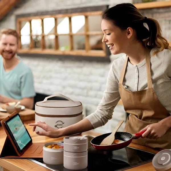 🥡 Acest set de recipiente pentru alimente cu mai multe straturi vă păstrează mâncărurile preferate calde timp de până la 4 ore.