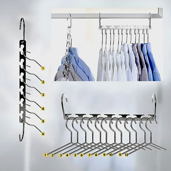 Transformați-vă garderoba cu umerașul SNAPHANG. Fiecare umeraș poate susține până la 12 piese de îmbrăcăminte pe orizontală sau 6 pe verticală, ceea ce îl face perfect pentru optimizarea spațiului din dulap.